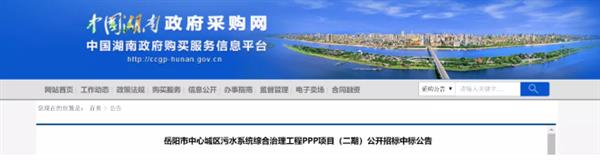 72億!長江環(huán)保聯(lián)合體預(yù)中標(biāo)岳陽市城區(qū)污水處理PPP項(xiàng)目