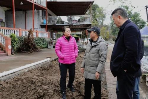 宋莉(中)現場查看截污干管建設和沿線商戶原有設施恢復情況
