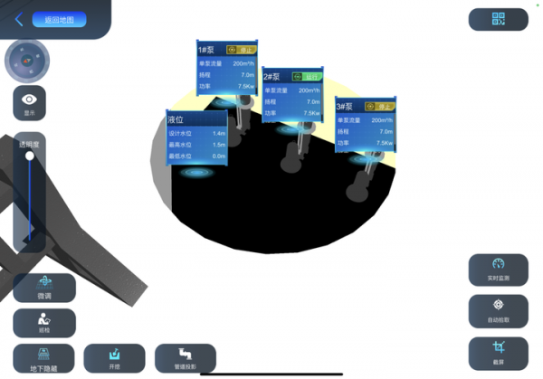 運檢人員只需手持一臺移動設備,掃描二維碼或直接GPS定位,便能進入泵站、井蓋等具體地點,所有設施設備以三維圖形立體呈現(xiàn),甚至連“地下隱藏”的水泵,都能點擊“開挖“鍵,檢查其運行狀態(tài)。